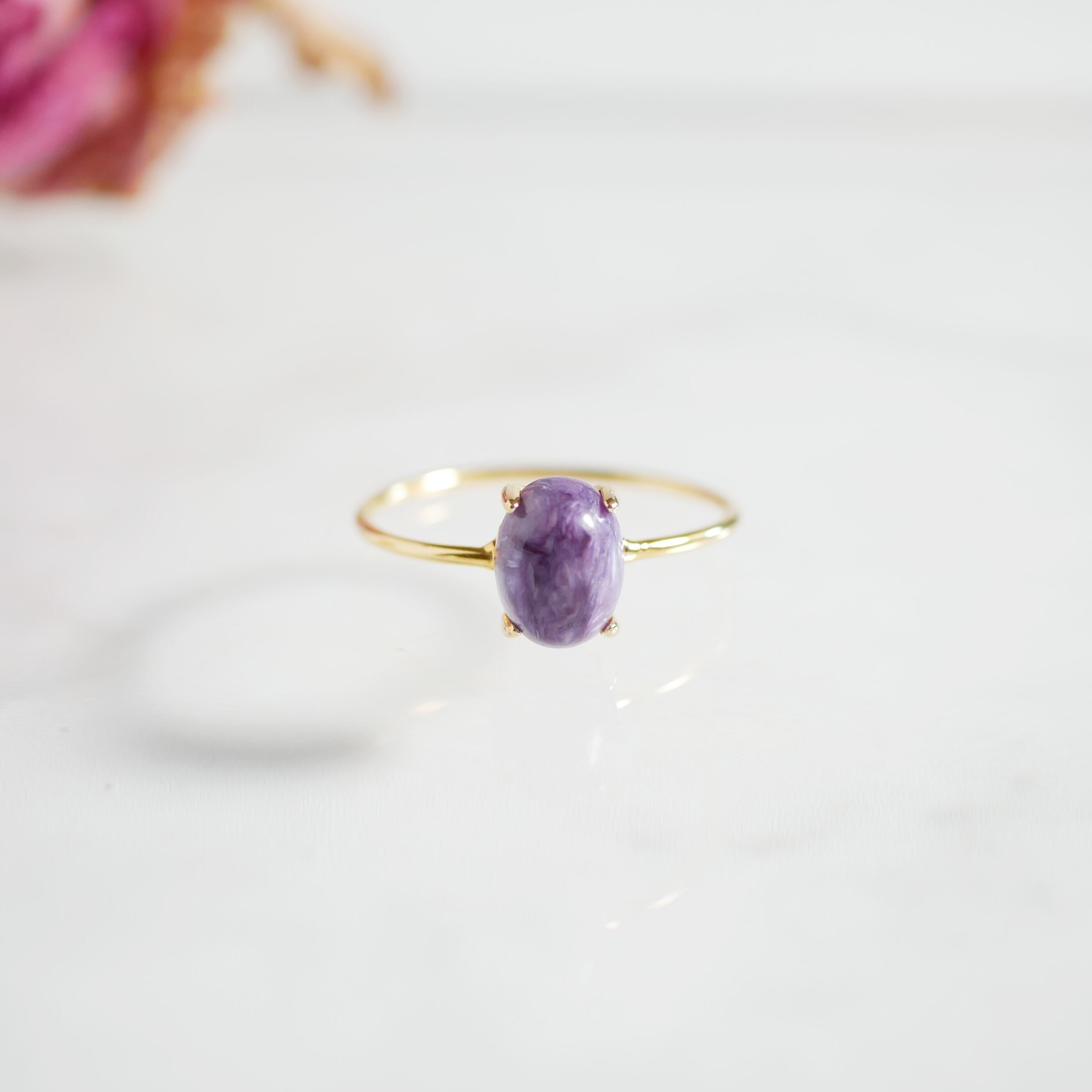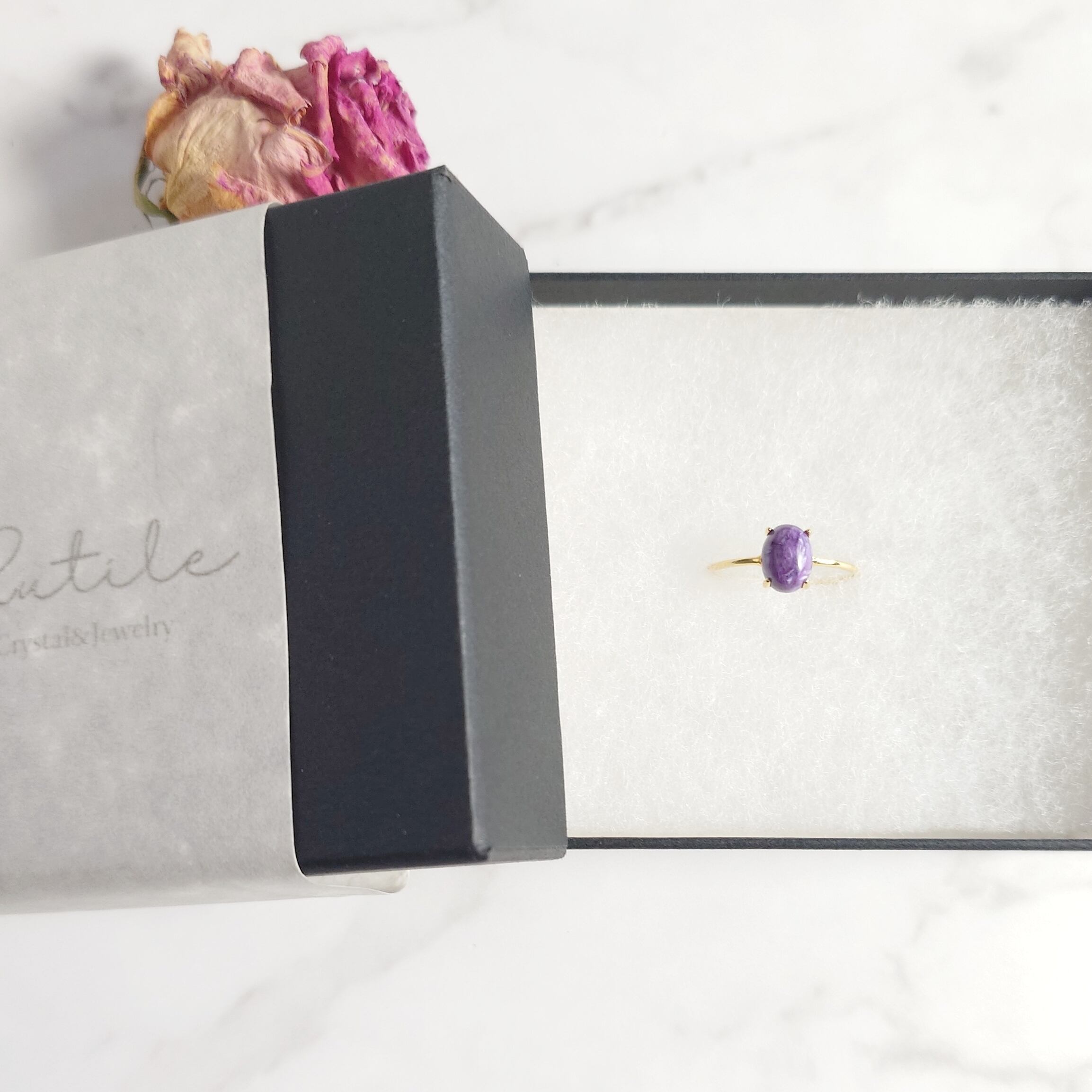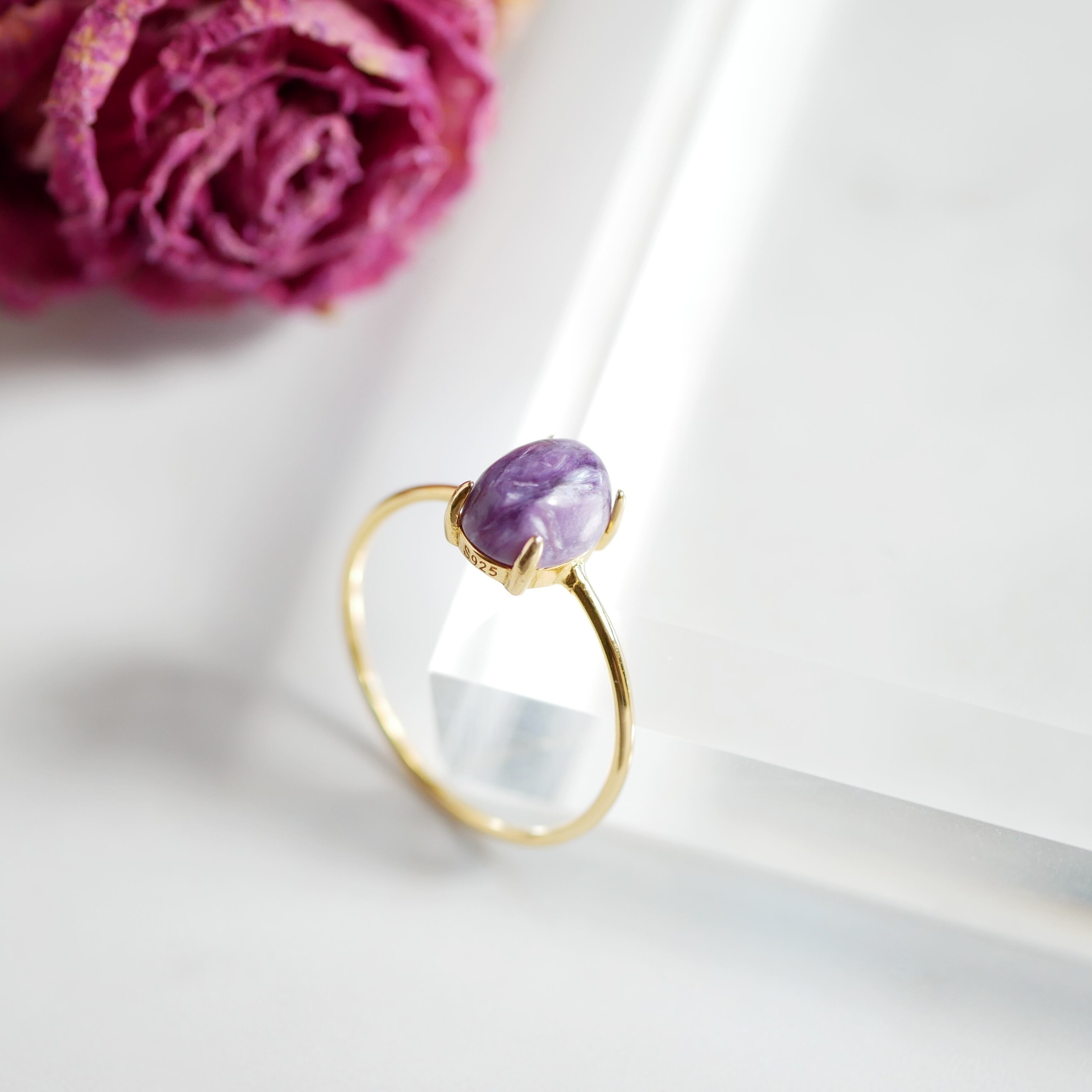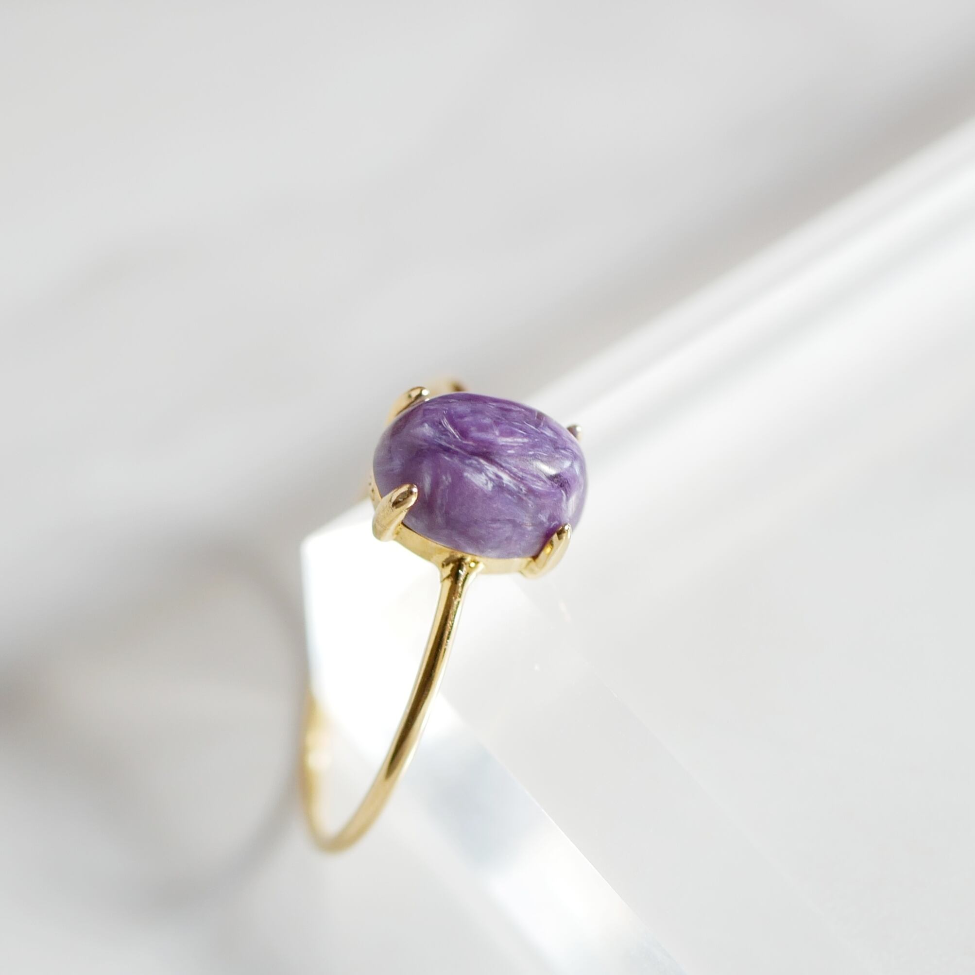 天然の模様が芸術的なチャロアイトのオーバル型リングです。