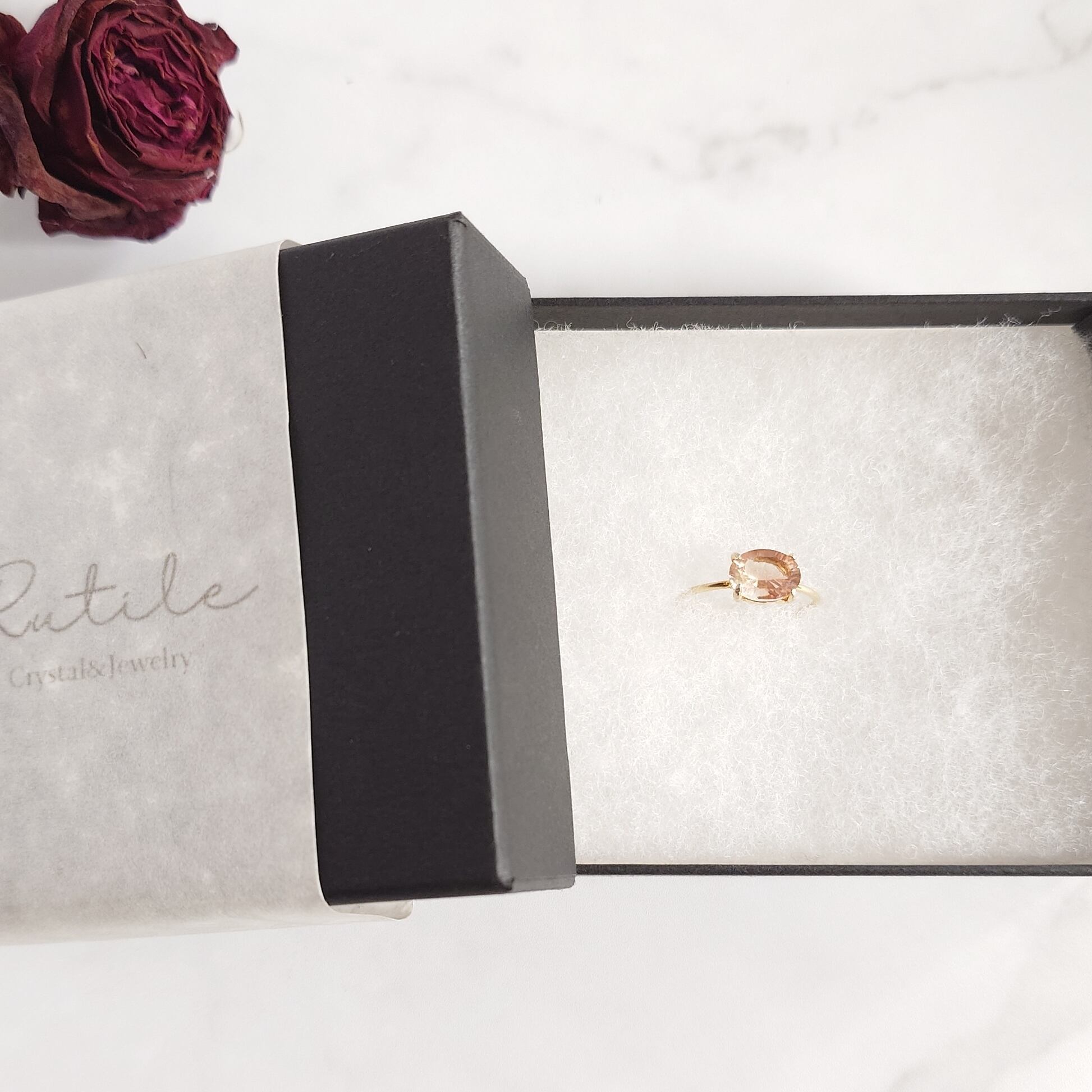 レアストーン!なかなか出会えない希少石、オレゴンサンストーンのリングです。優しいピーチカラーが魅力!