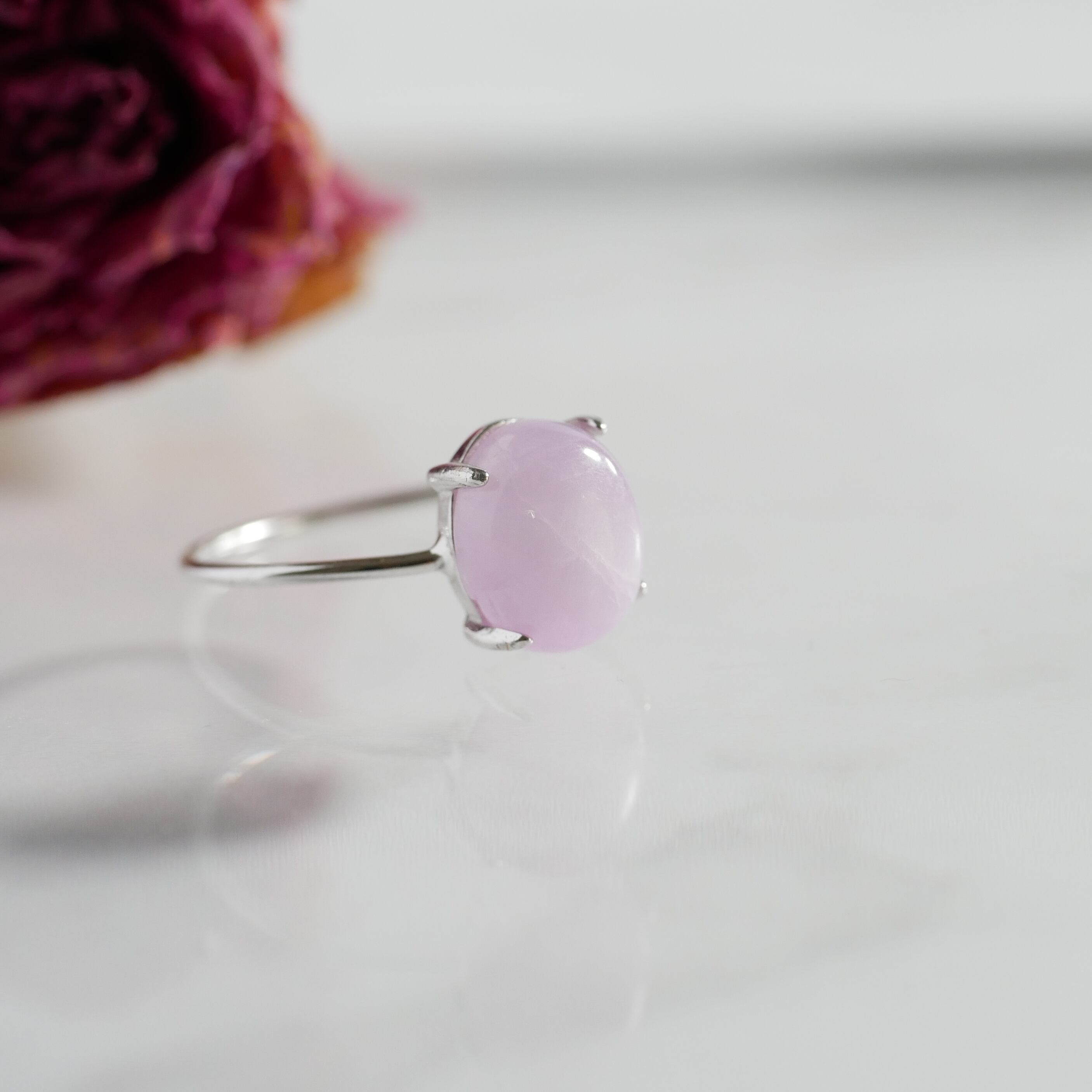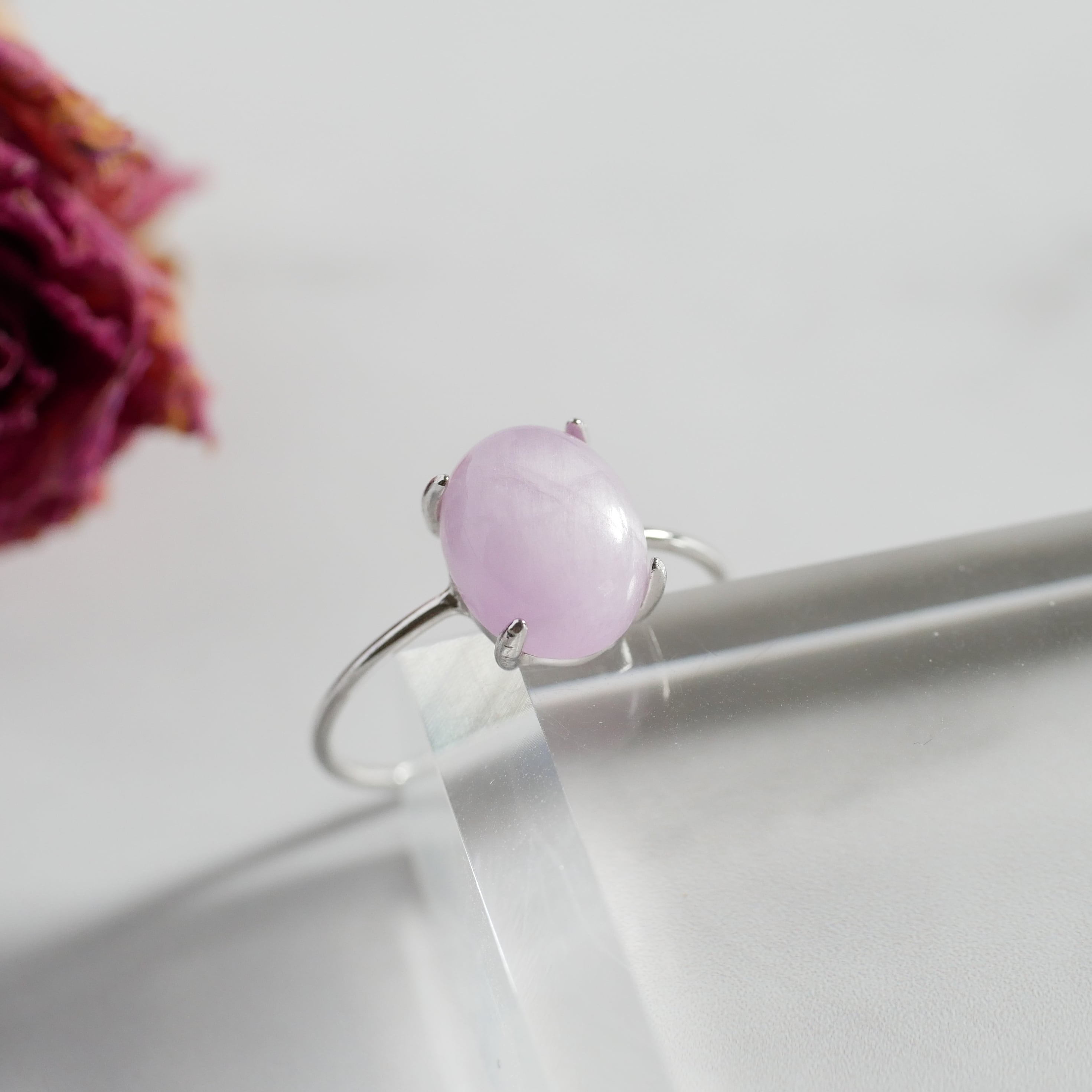 こちらの「クンツァイト」オーバルリングは、ミルキーなアッシュピンクの「クンツァイト」を用い、天然石の表情を豊かにお伝えできるようシンプルエレガントなデザインに仕上げています。