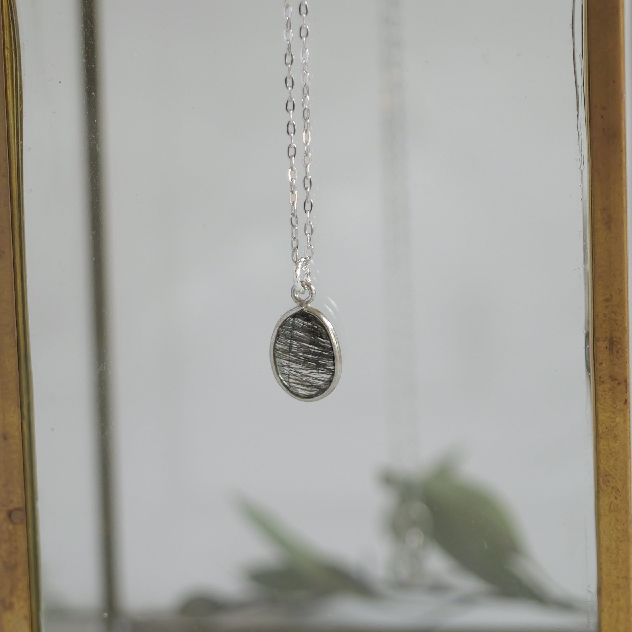 透明×ブラック×シルバーのモノトーン仕様で、大人シック!ブラックトルマリンが水晶の中で踊る!