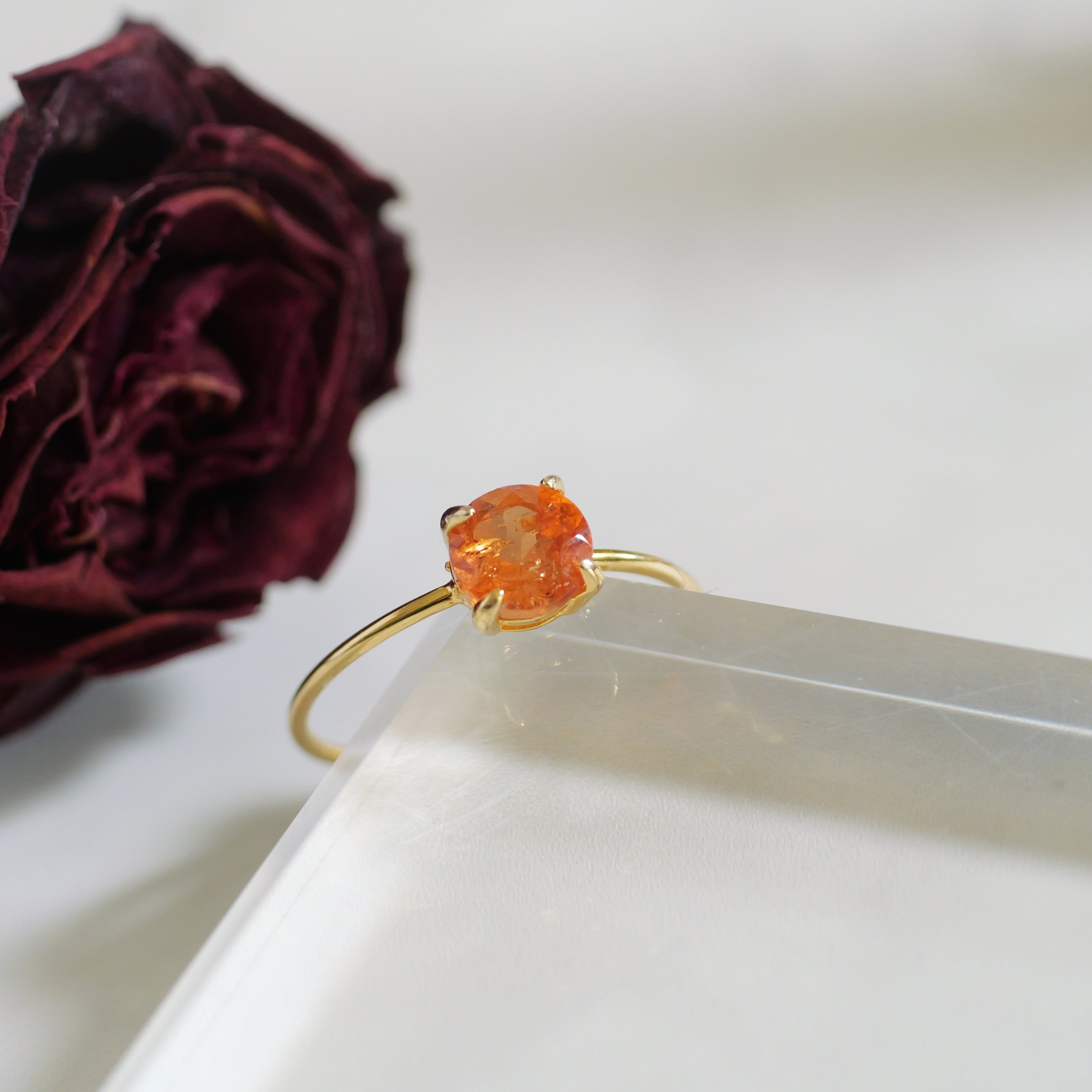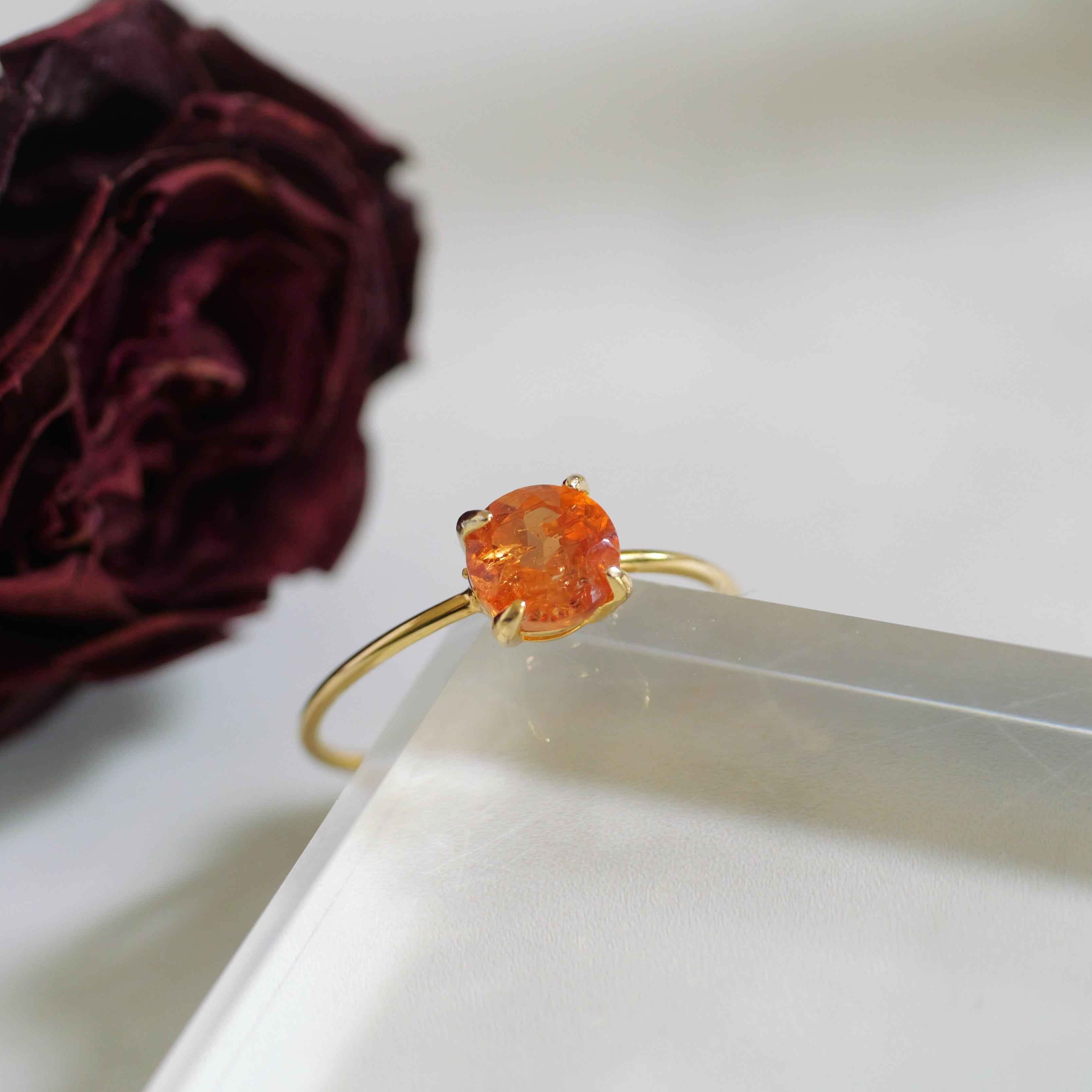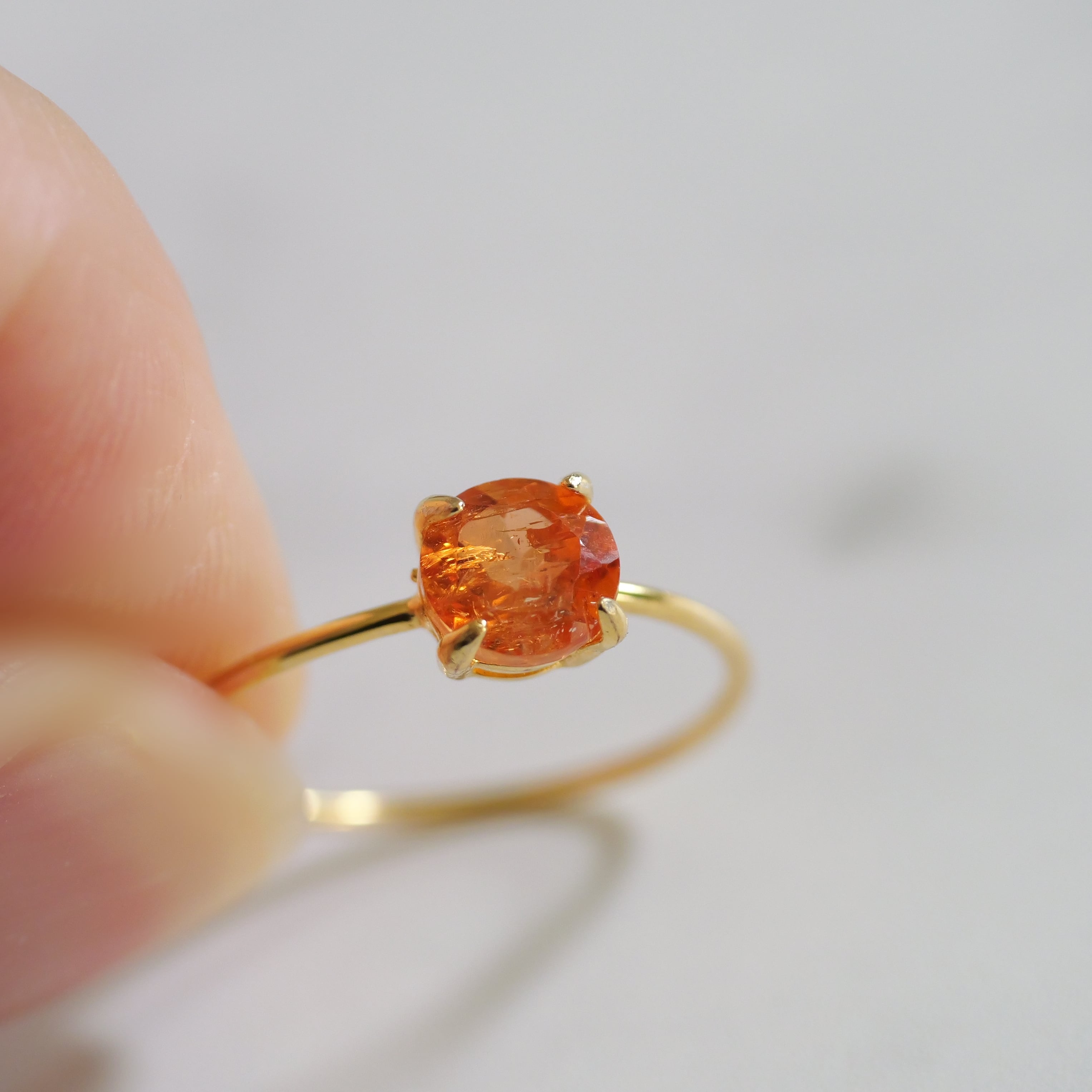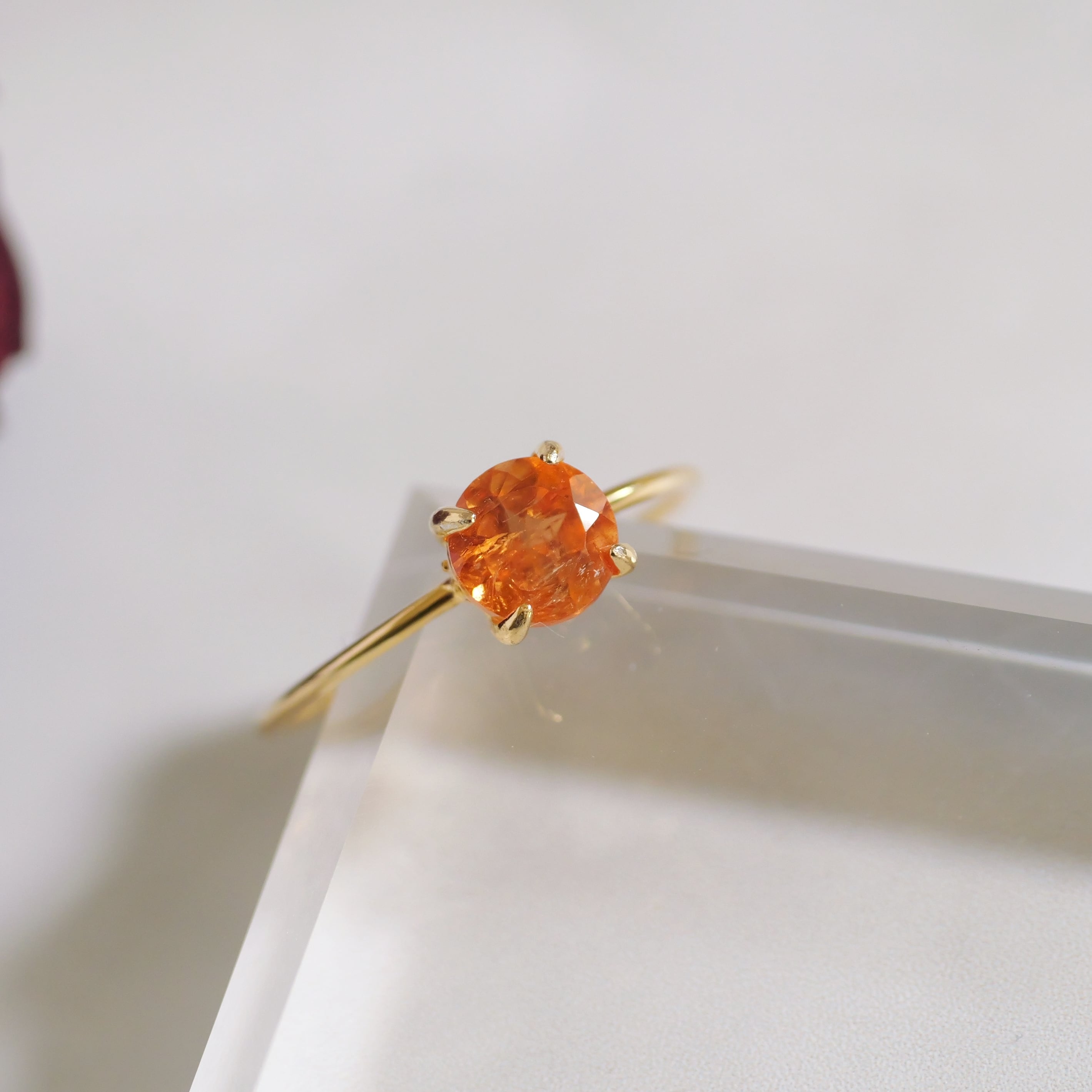 芳醇で魅惑的。豊かさや高貴さの象徴であるインペリアルトパーズのラウンドリングです。こちらのブラジル産インペリアルトパーズの大きさは、約6mm×6mmサイズ。デイリーに装っていただきやすいサイズながら、その煌めきとクラス感は極上です。