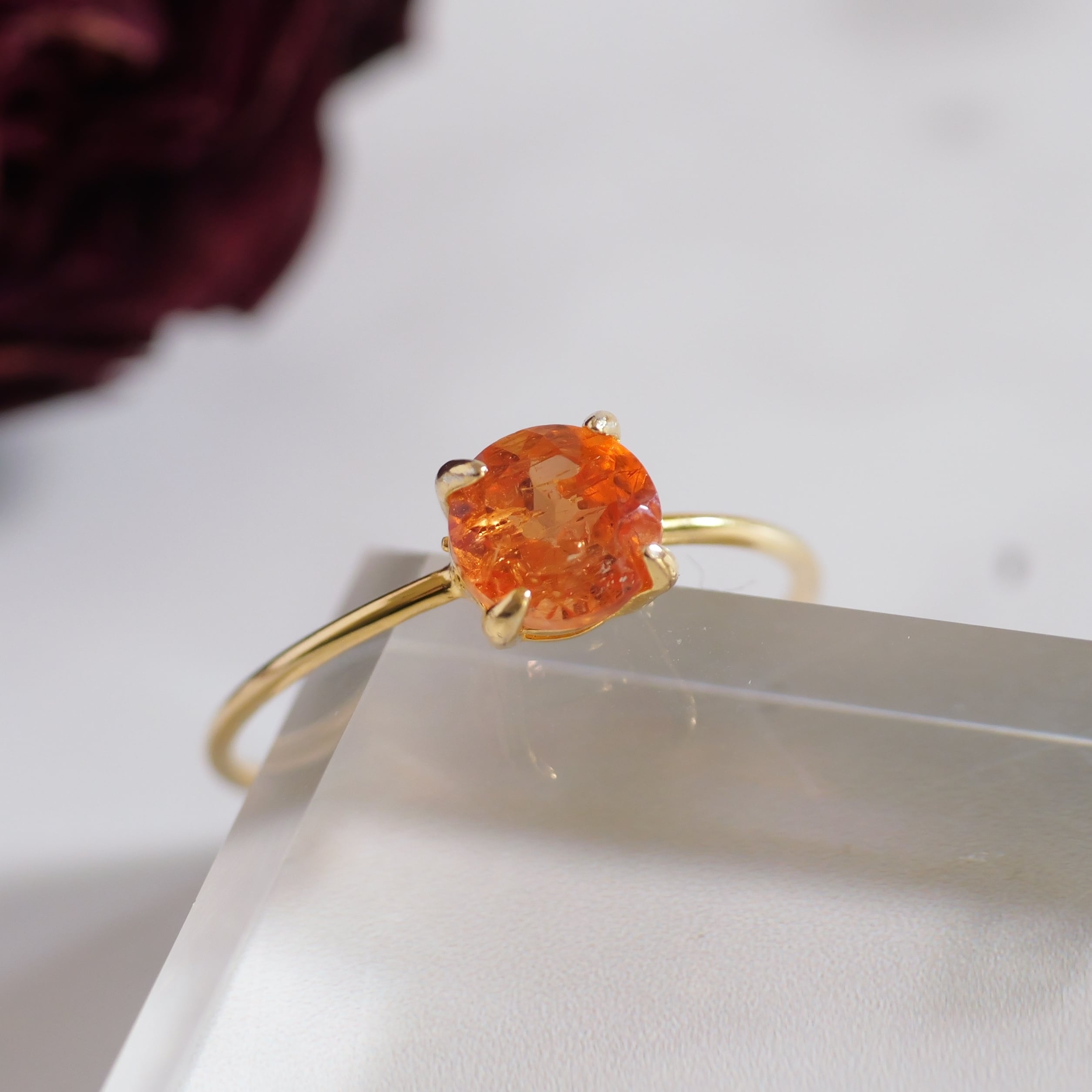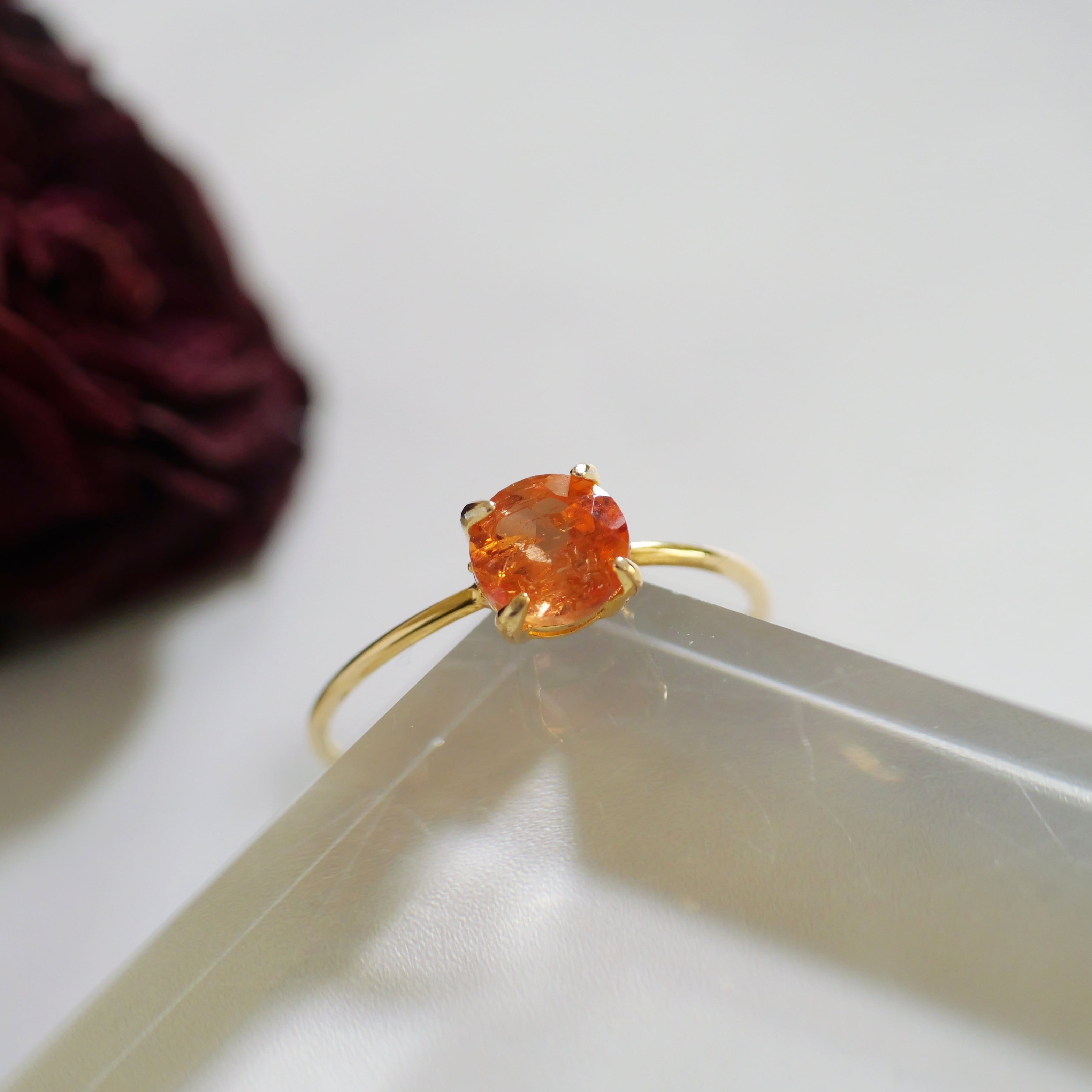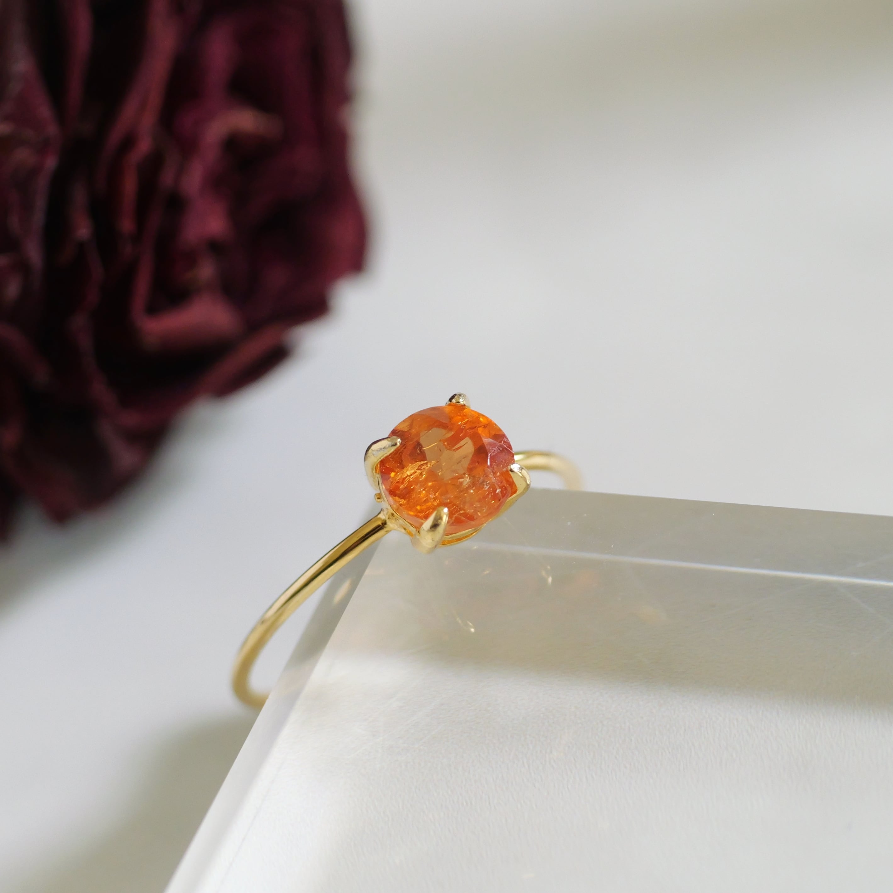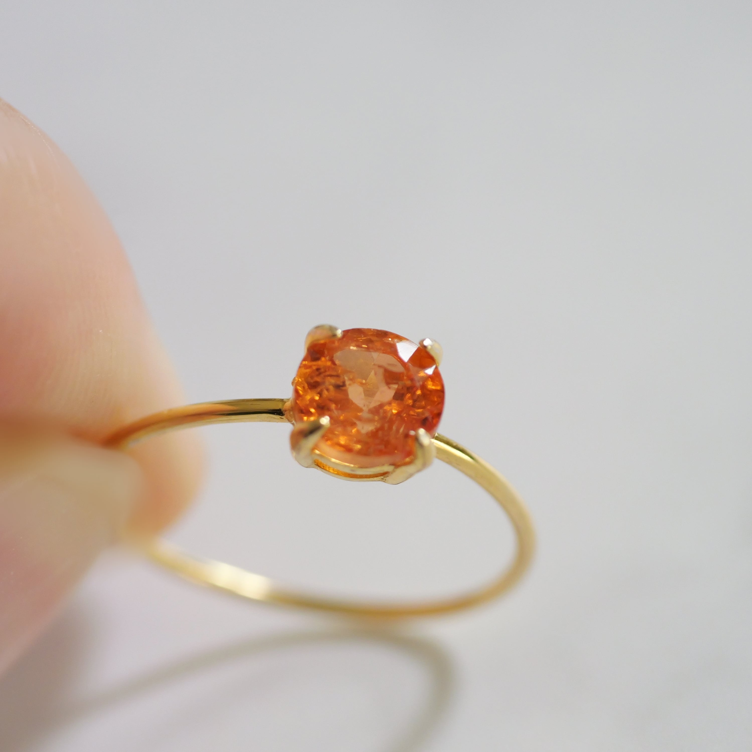 芳醇で魅惑的。豊かさや高貴さの象徴であるインペリアルトパーズのラウンドリングです。こちらのブラジル産インペリアルトパーズの大きさは、約6mm×6mmサイズ。デイリーに装っていただきやすいサイズながら、その煌めきとクラス感は極上です。