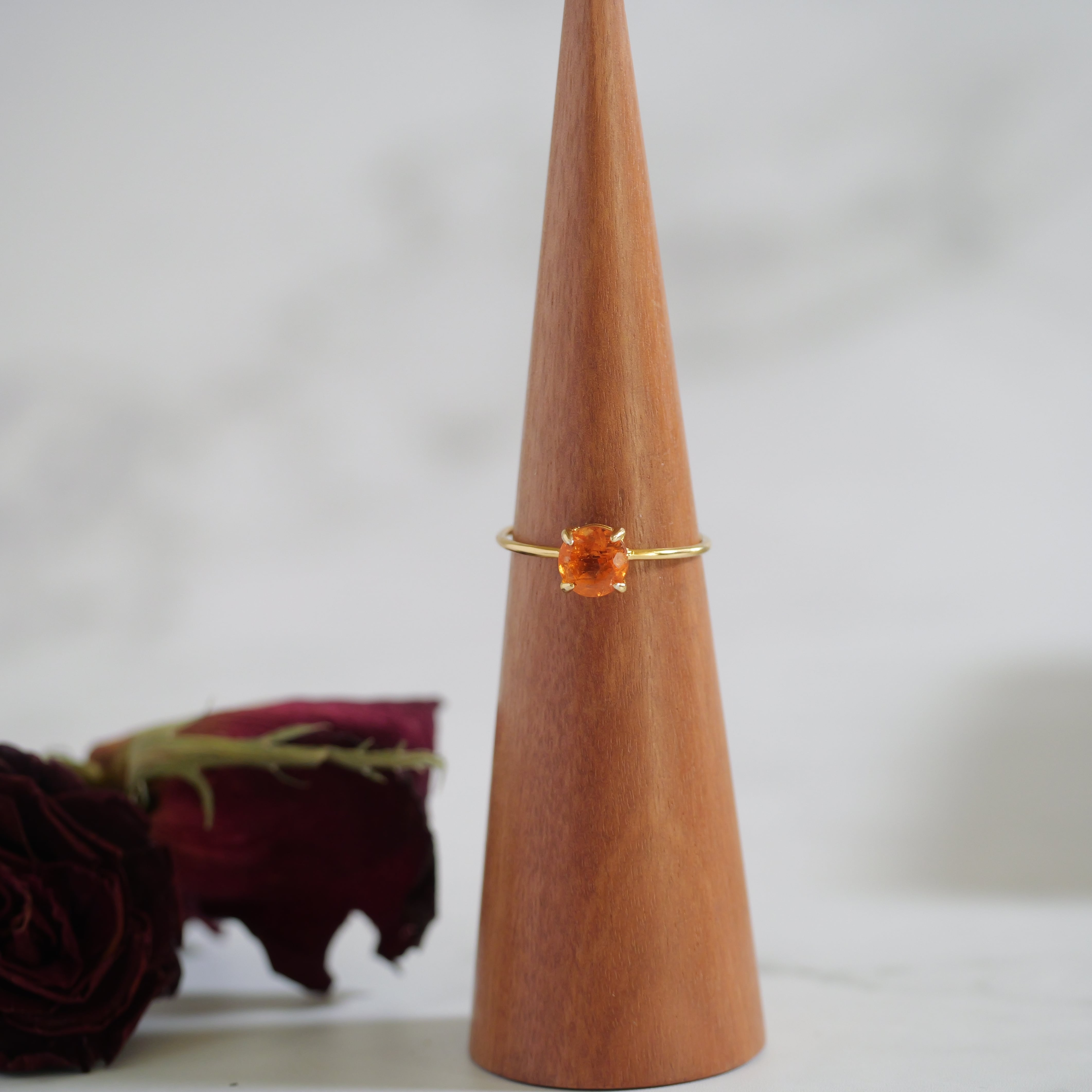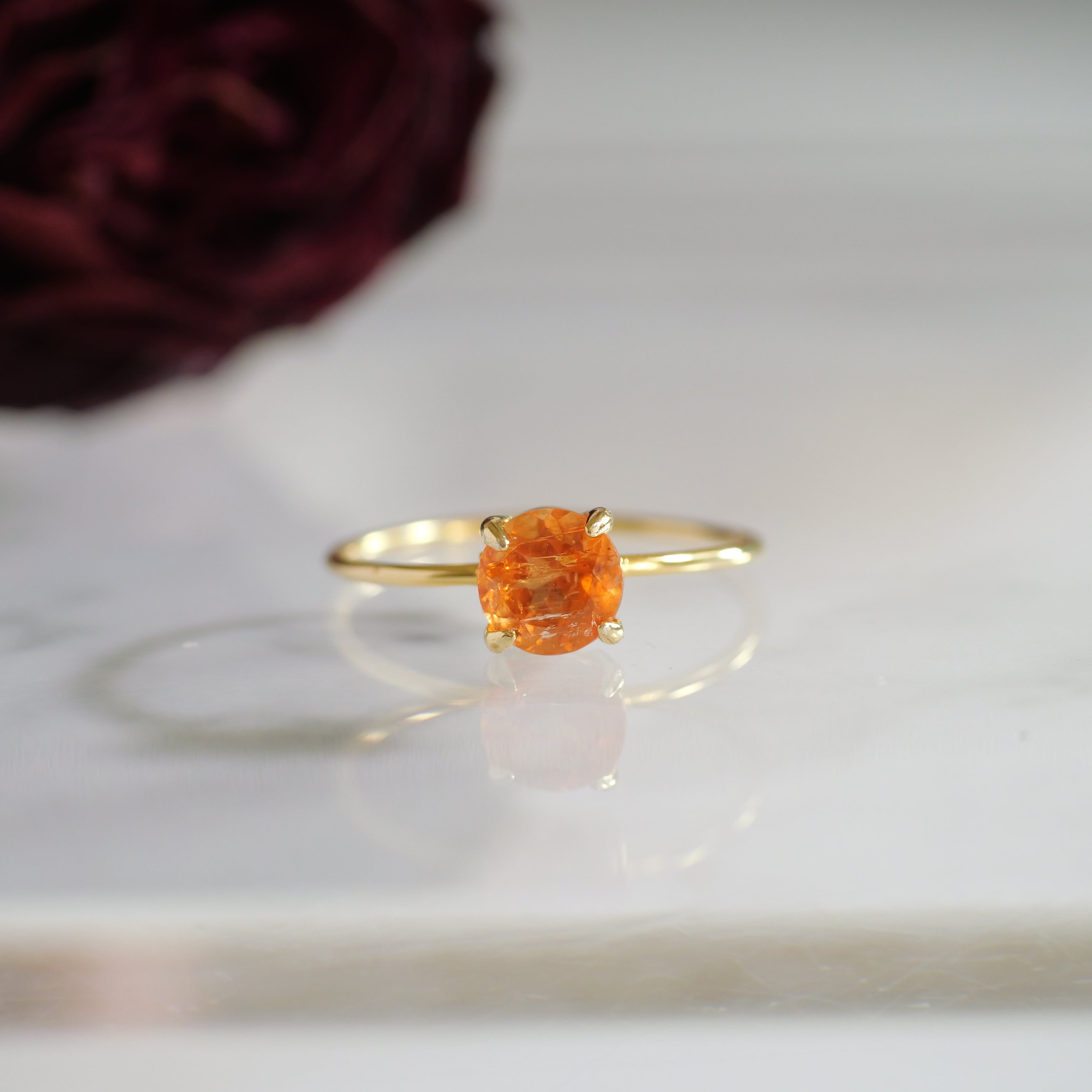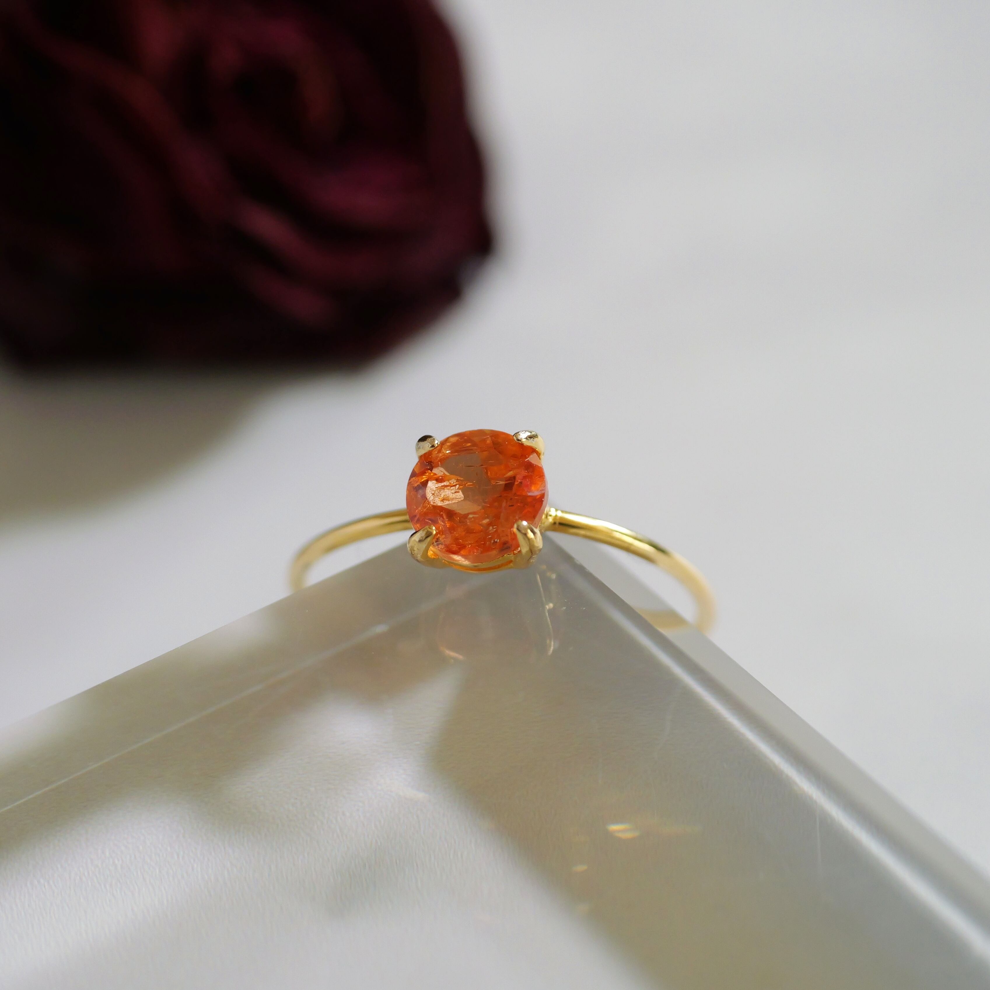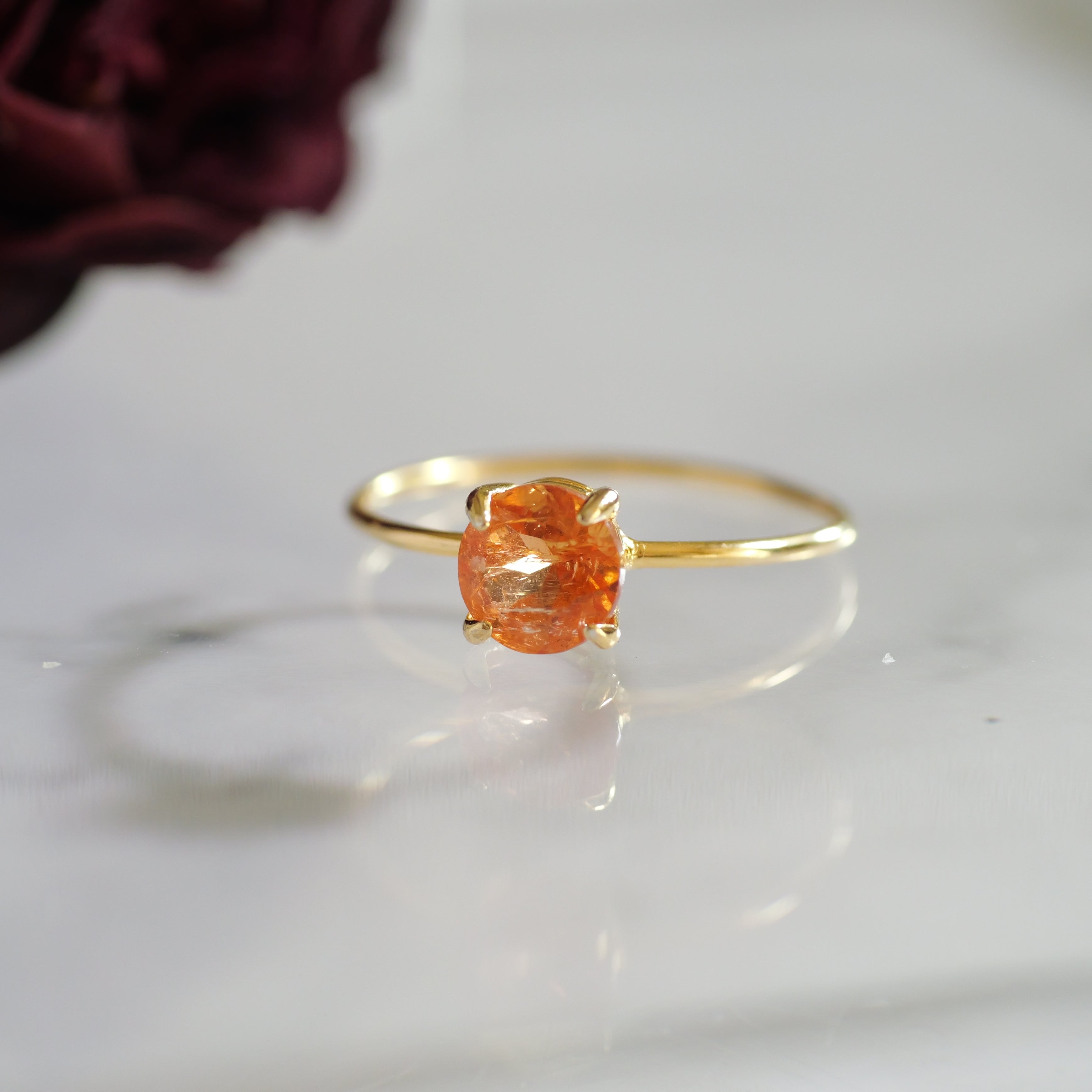 芳醇で魅惑的。豊かさや高貴さの象徴であるインペリアルトパーズのラウンドリングです。こちらのブラジル産インペリアルトパーズの大きさは、約6mm×6mmサイズ。デイリーに装っていただきやすいサイズながら、その煌めきとクラス感は極上です。