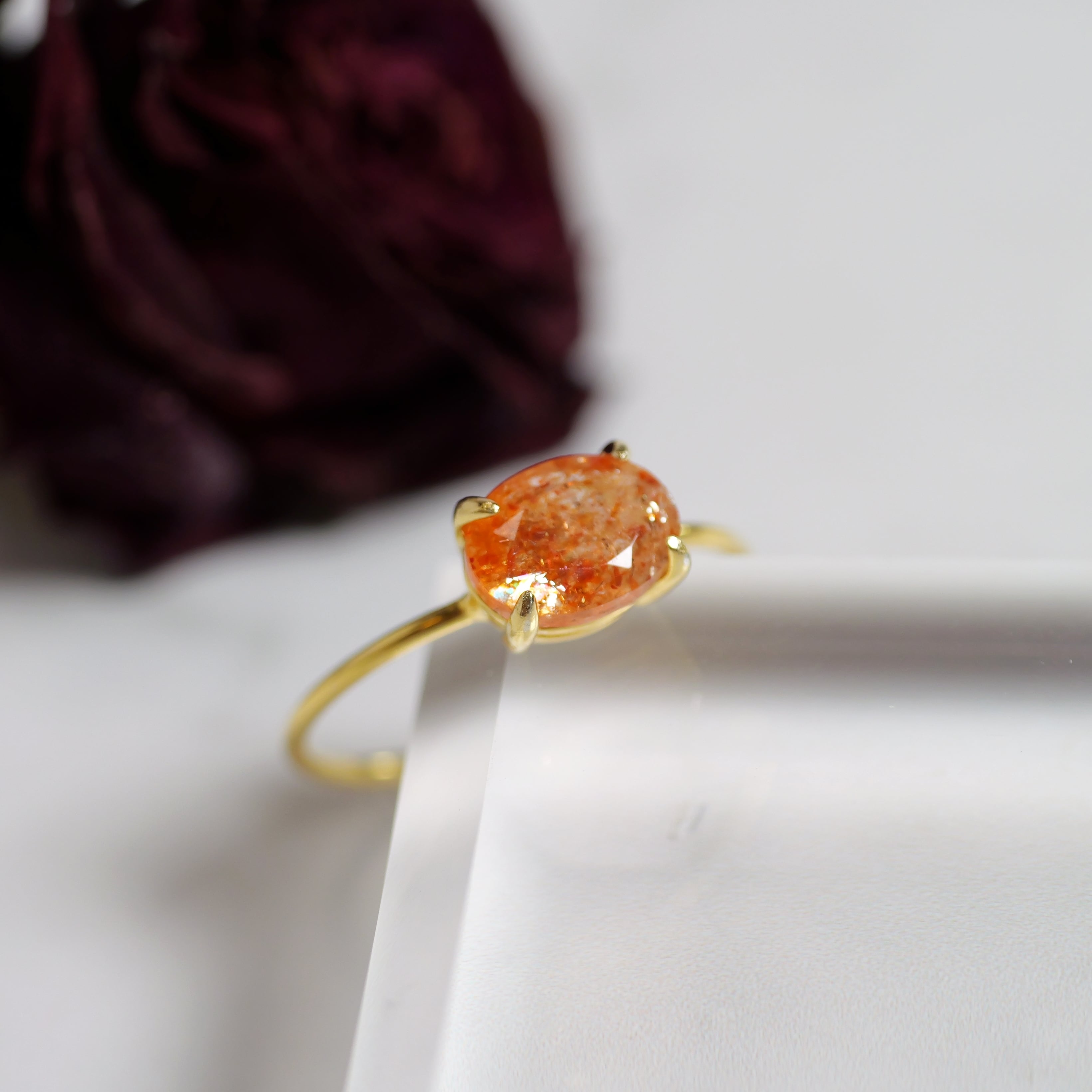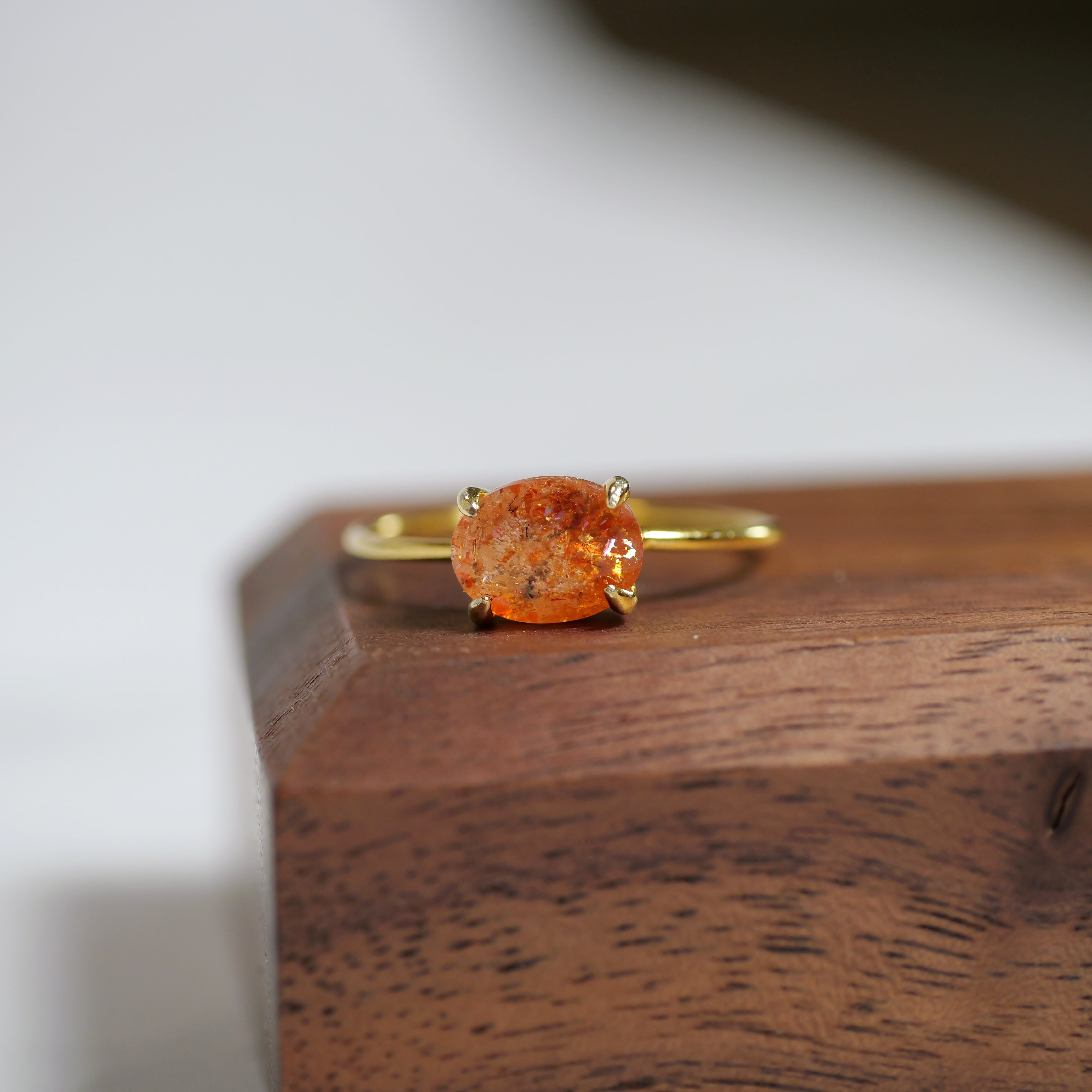 「イルージョンサンストーン オーバル リング No.3」は、タンザニア産のサンストーン。とても透明感があり、大人っぽくて芸術的。クラス感やエレガントさを持ち合わせながらも情熱的で官能的な印象です。全体のトーンは、クリアなオレンジカラー。