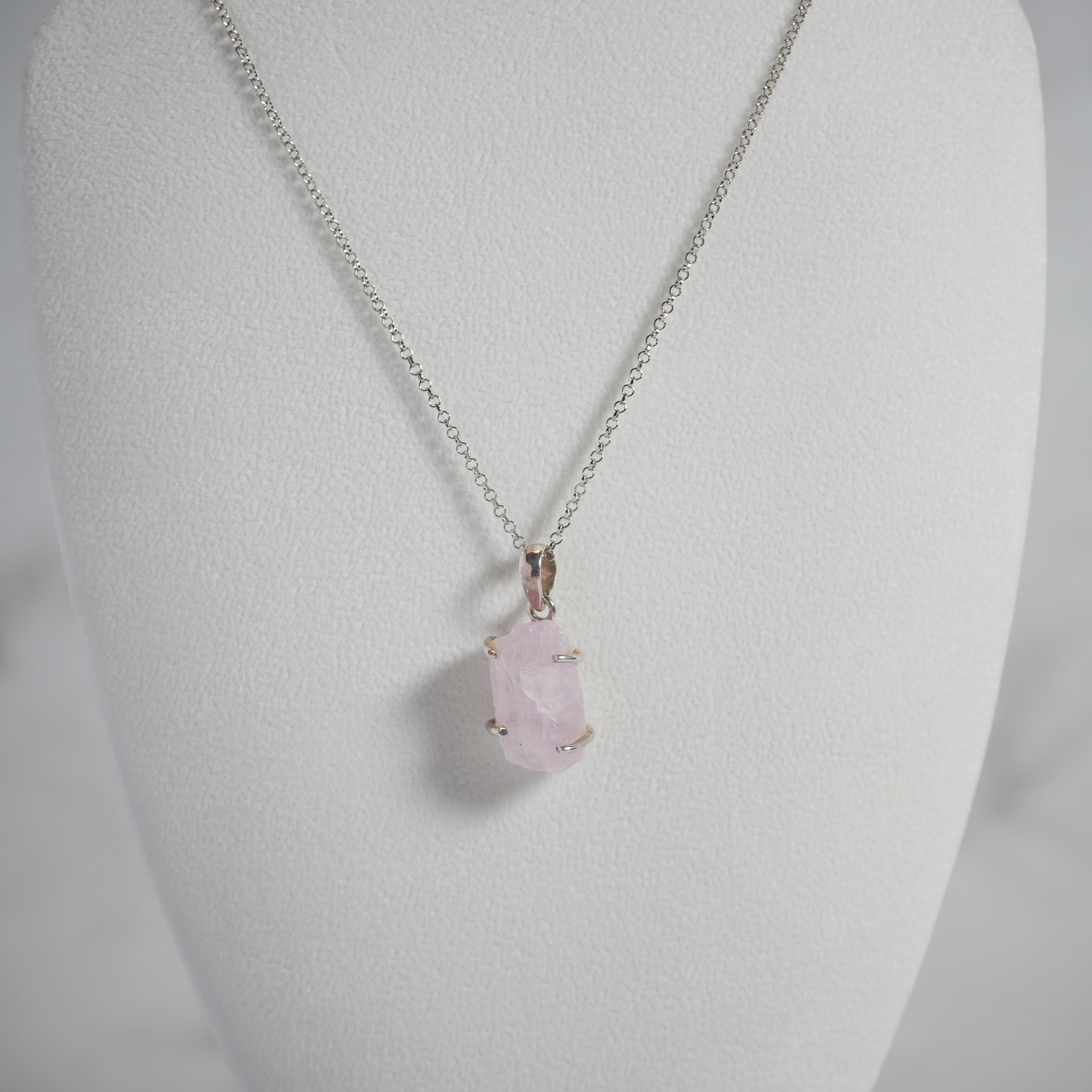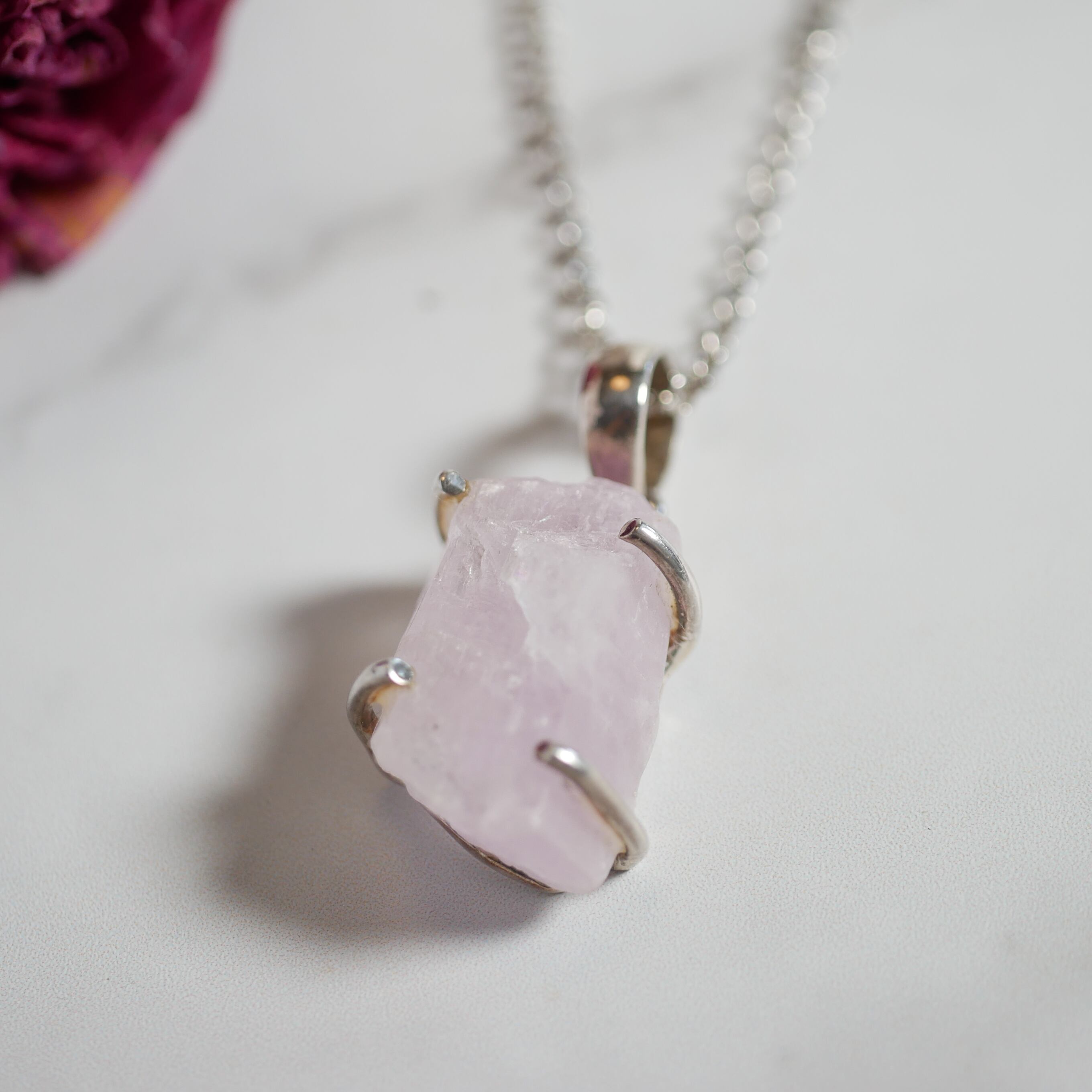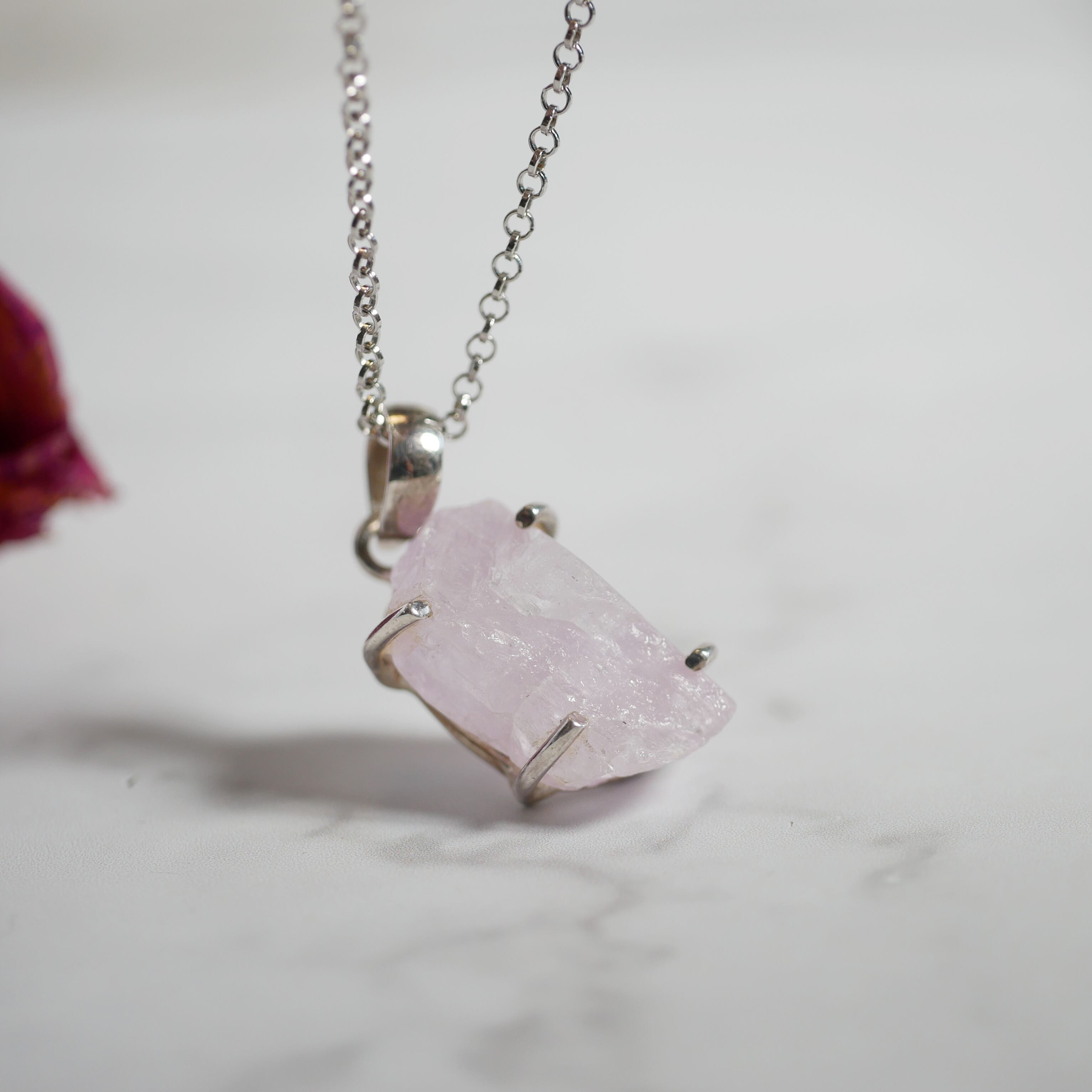 やさしいピンクのオーラに癒される!やわらかフェミニン。お洒落なクンツァイト原石ネックレスです。