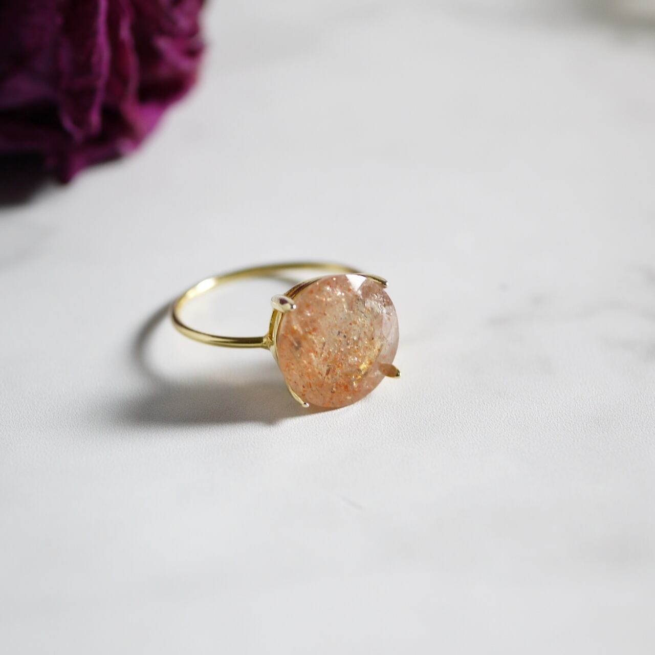 まるでキラキラの星屑を散りばめたかのようなサンストーンのリング。