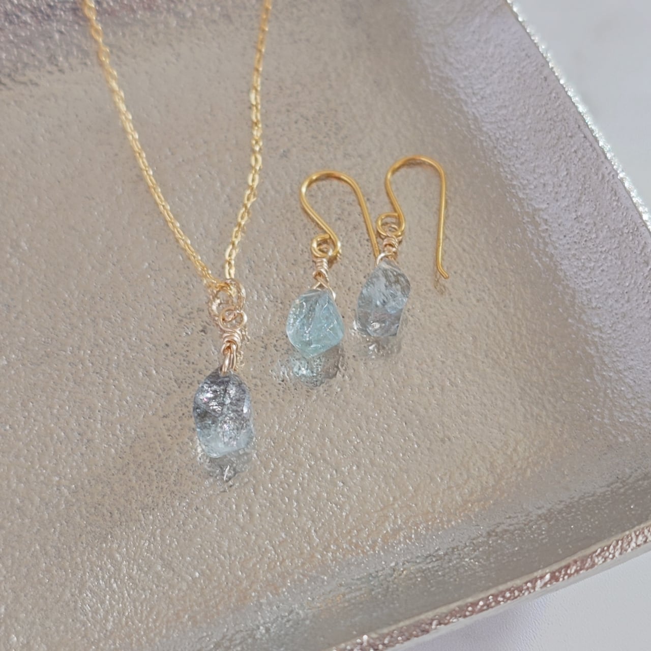 インクルージョンが美しい。モスアクアマリンのネックレス&ピアスで大人シックな装いを!