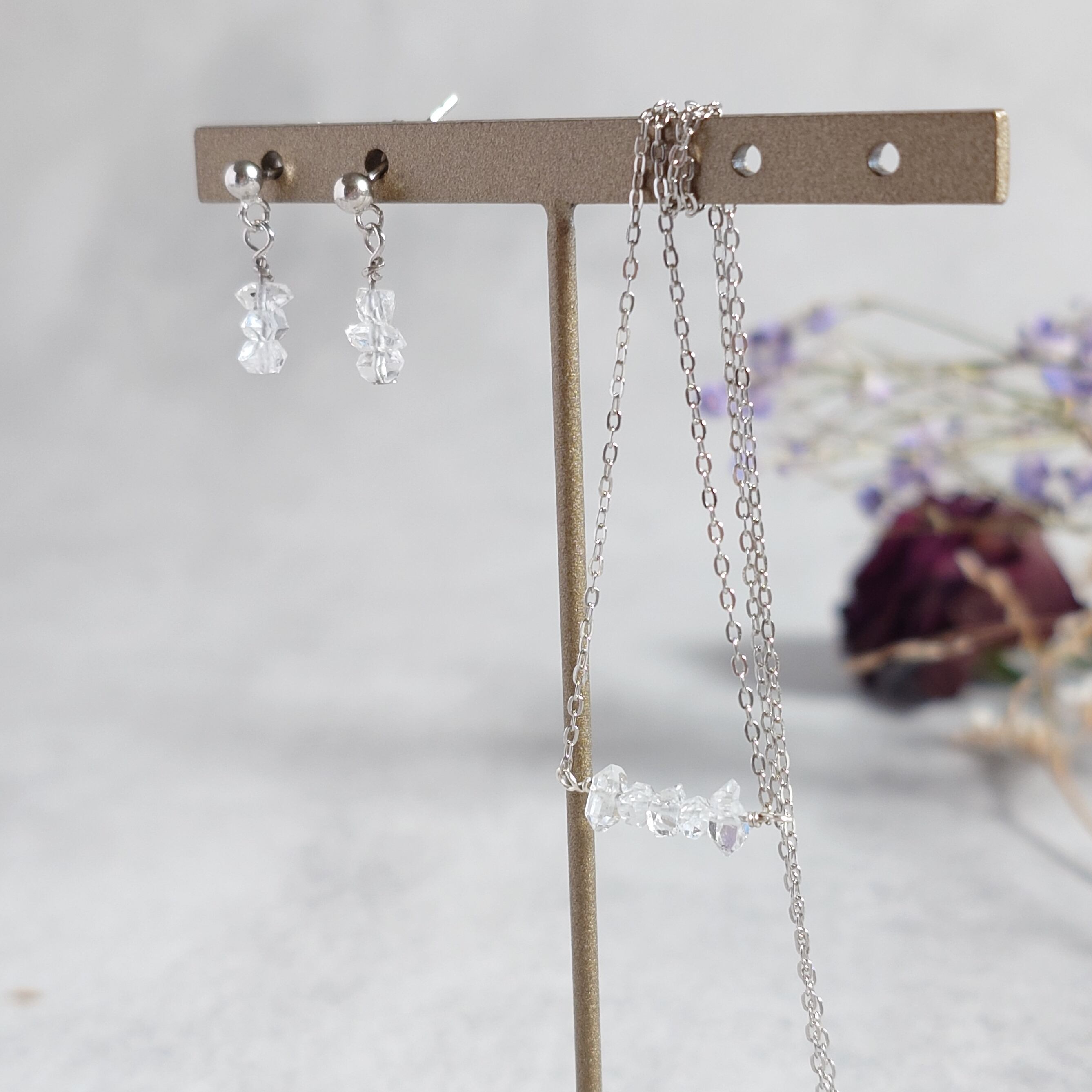 上品な煌めきで、普段の装いにクラス感を添えるプラスハーキマーダイヤモンドのネックレス&ピアス!