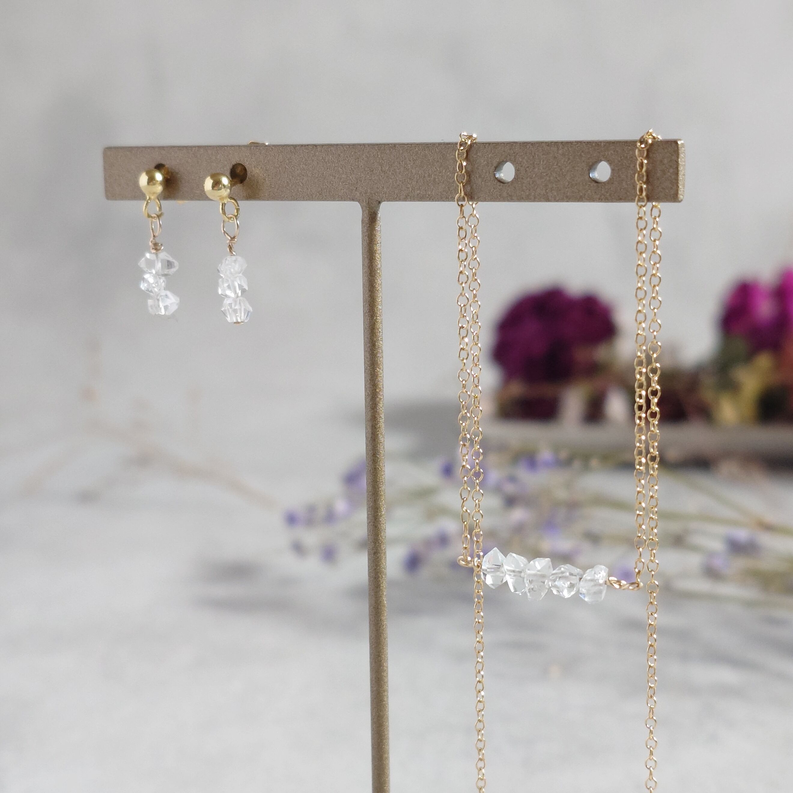 上品な煌めきで、普段の装いにクラス感を添えるプラスハーキマーダイヤモンドのネックレス&ピアス!