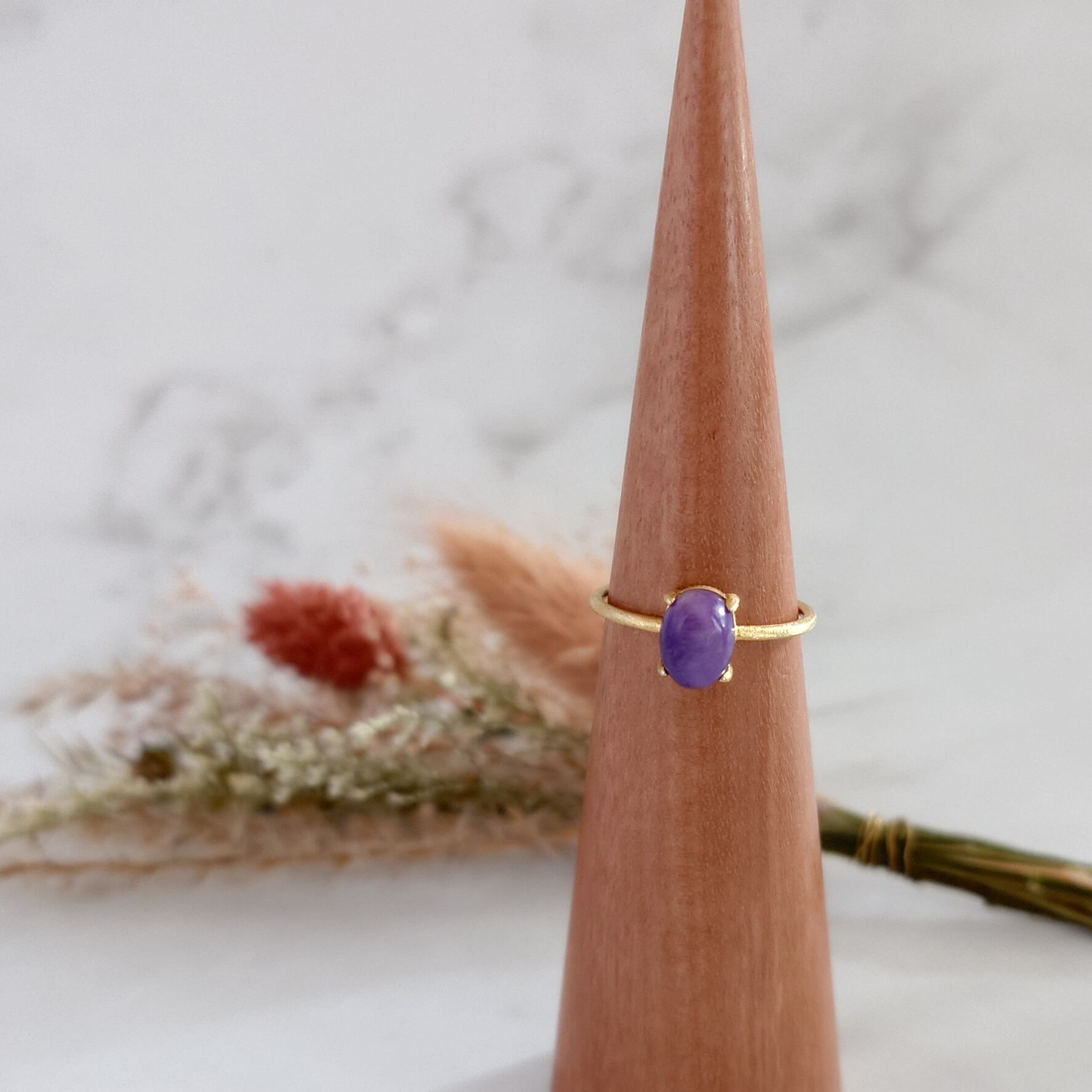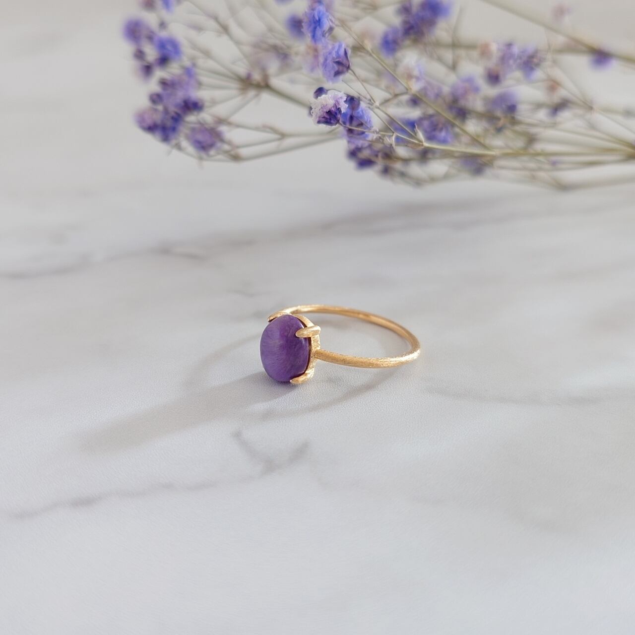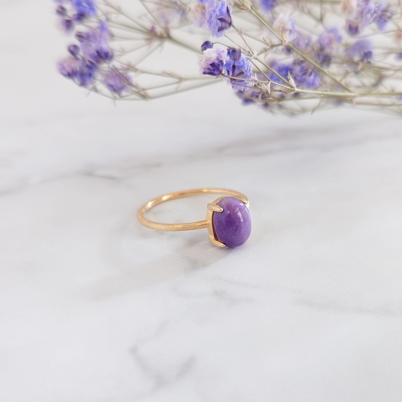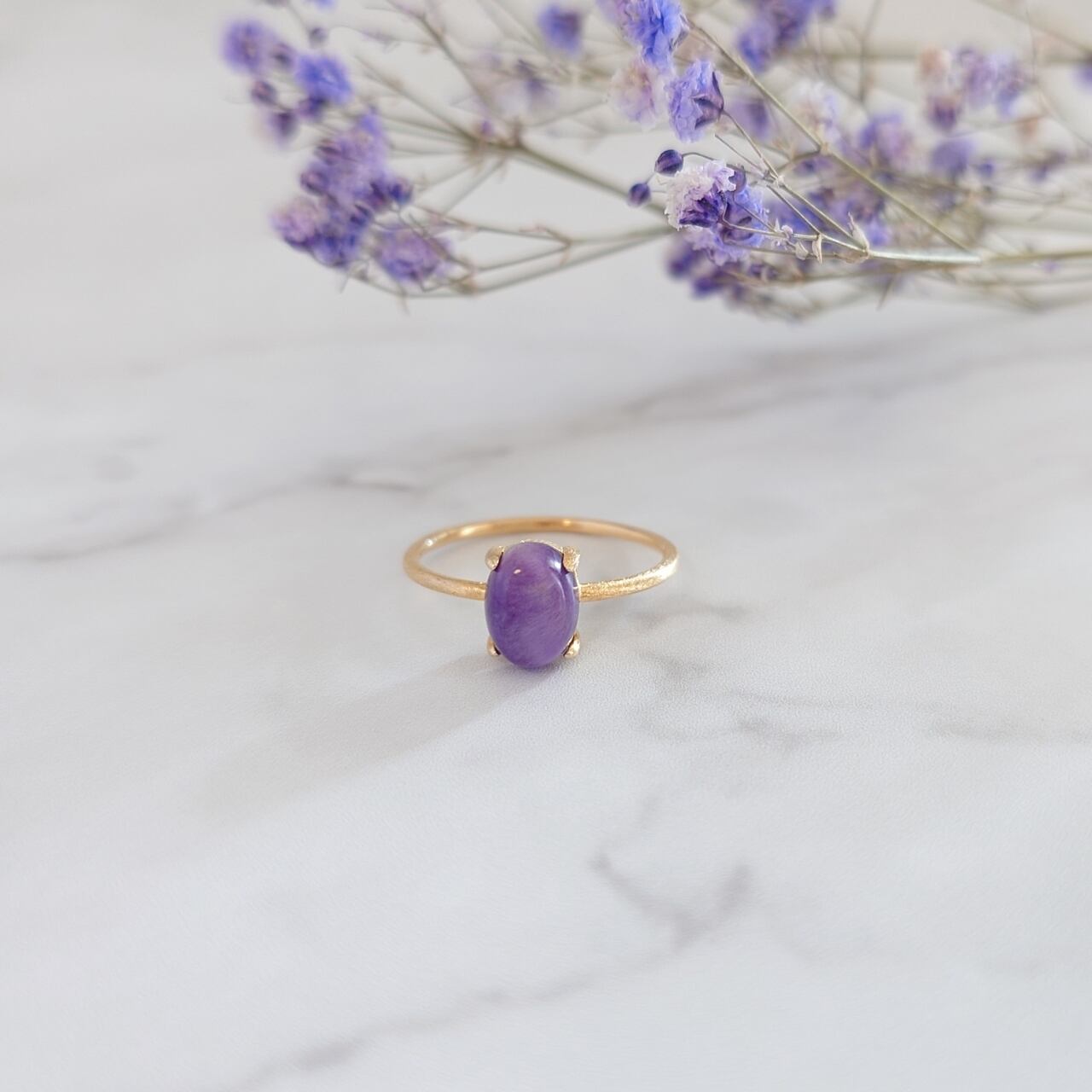 天然の模様が芸術的なチャロアイトのオーバル型リングです。