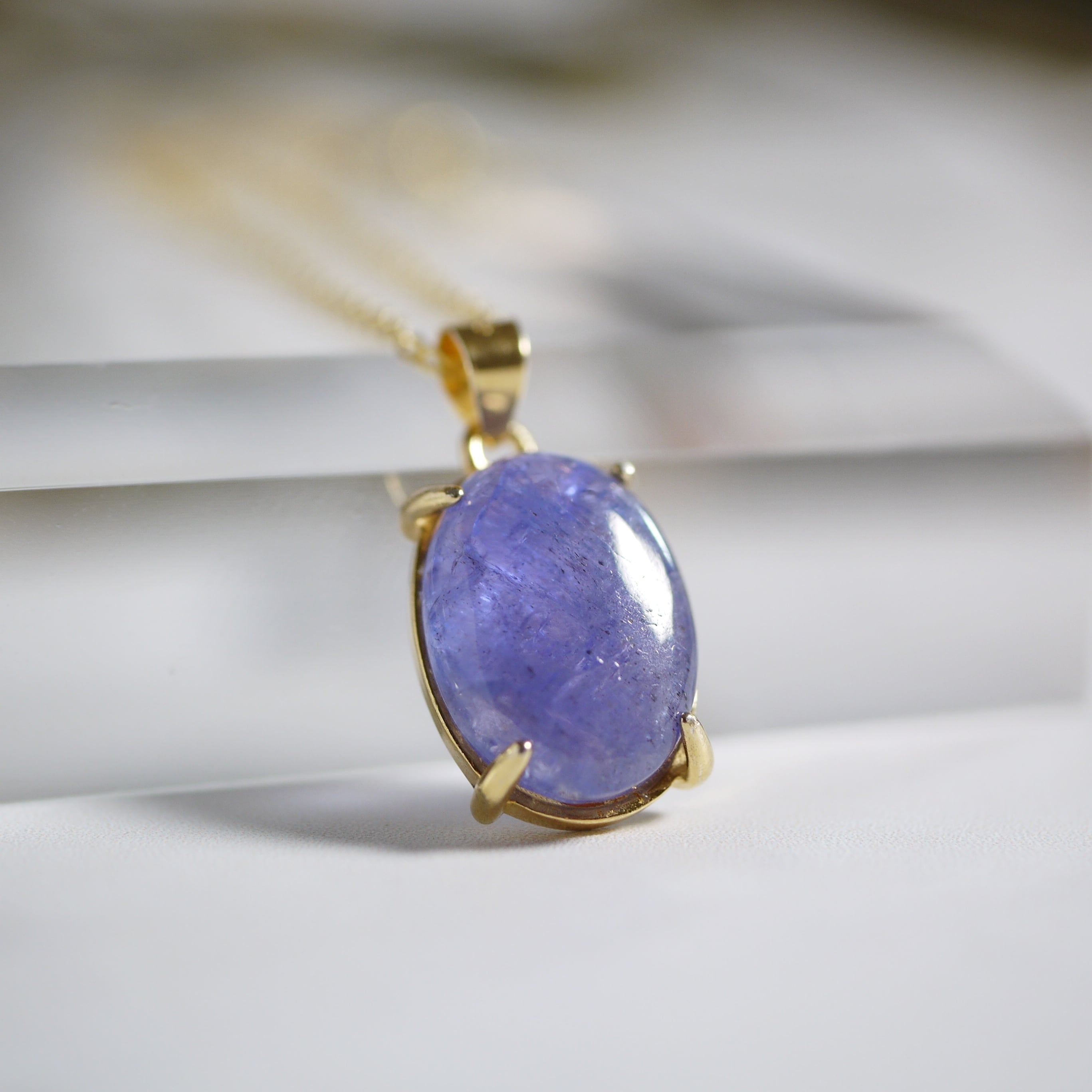 まるで日没直後の夜空。マジカルなブルーモーメントを彷彿とさせるタンザナイトのネックレスです。