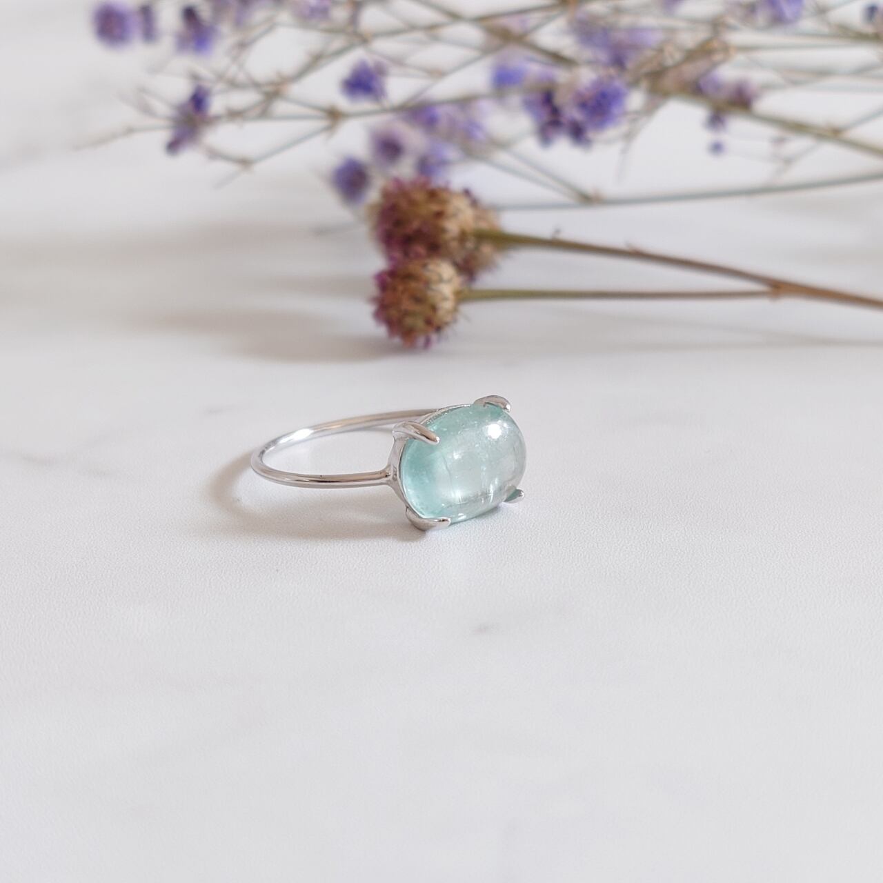 タンザニア産、アクアカイヤナイトのオーバル型リングです。